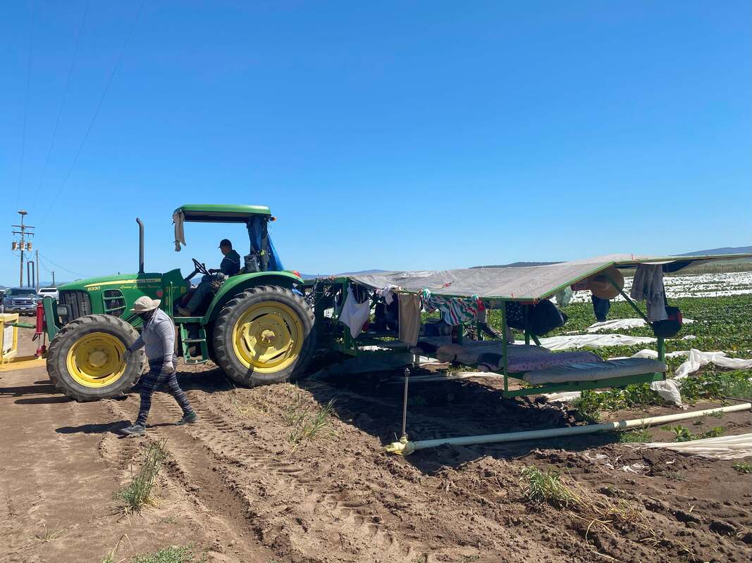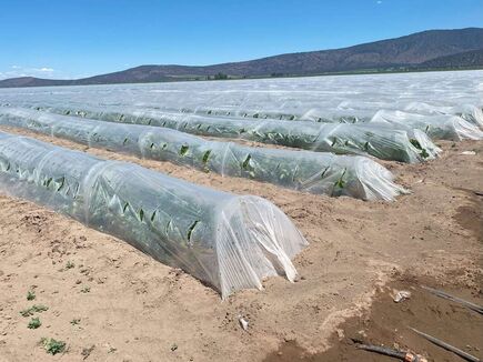 Strawberry Nursery Project (2022 Summer) Nursery plants with potecting shield in high elevation field Strawberry nursery project team photo Labor and machines for weed and flower control in high elevation field Packing machines for strawberry nursery plants